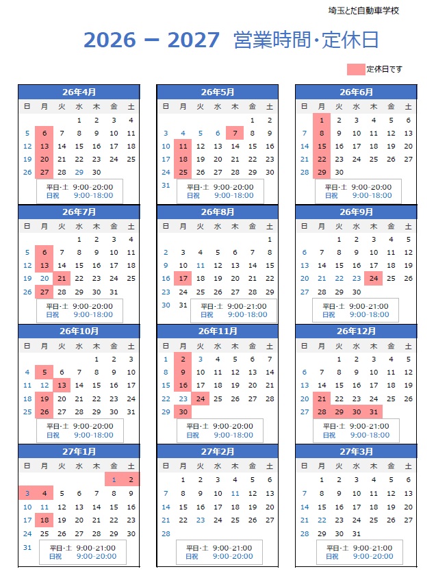 令和8年度の弊社営業日・営業時間は下記の通りとさせていただきます。