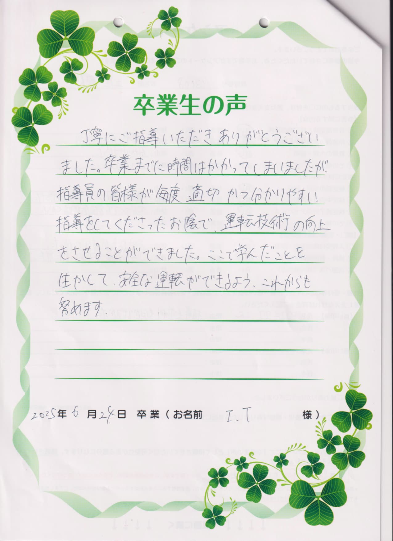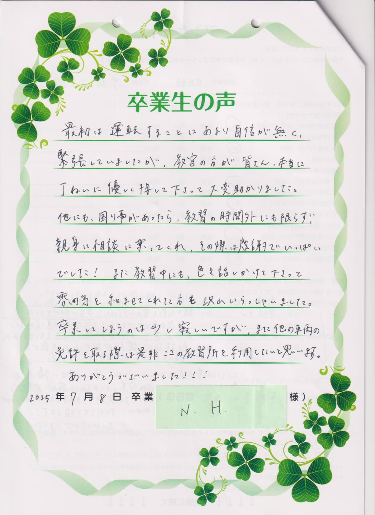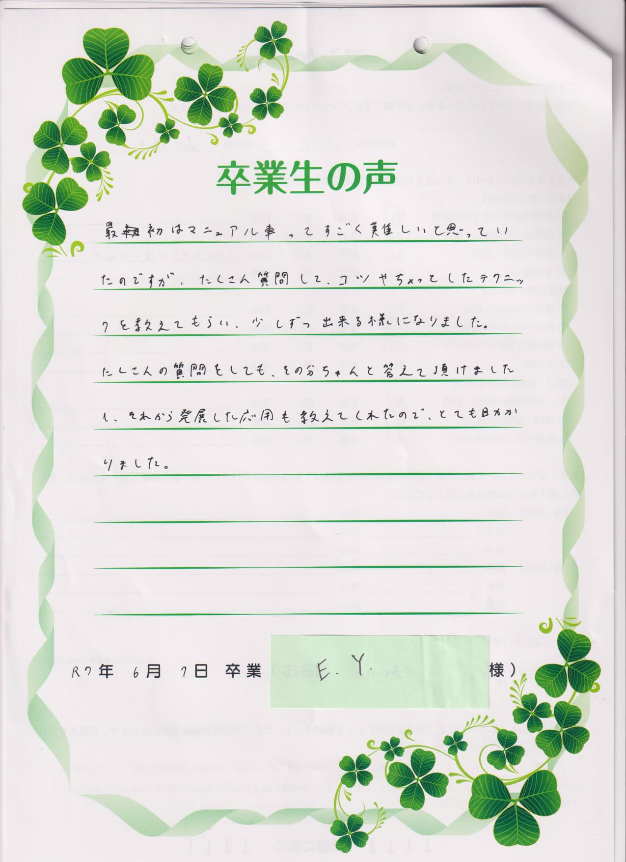 卒業生のみなさんから、いつもうれしいメッセージが続々届きます。その中から一部ご紹介させていただきます。